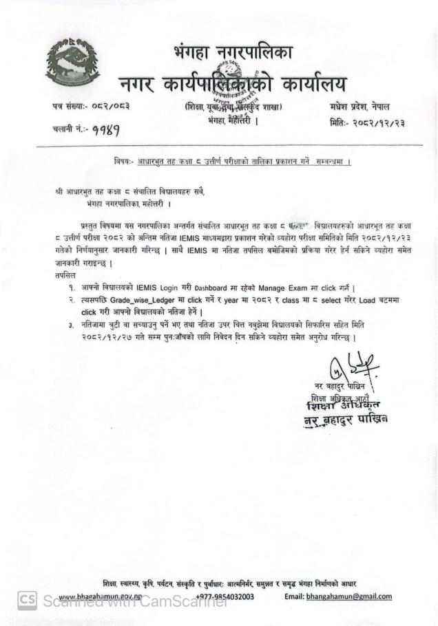 » आधारभुत तह कक्षा ८ उत्तीर्ण परीक्षाको तालिका प्रकाशन गर्ने सम्बन्धमा ।