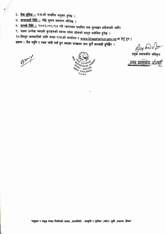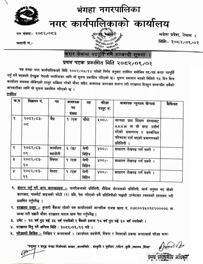 करार सेवामा पदपूर्ति गर्ने सम्बन्धी सूचना ।