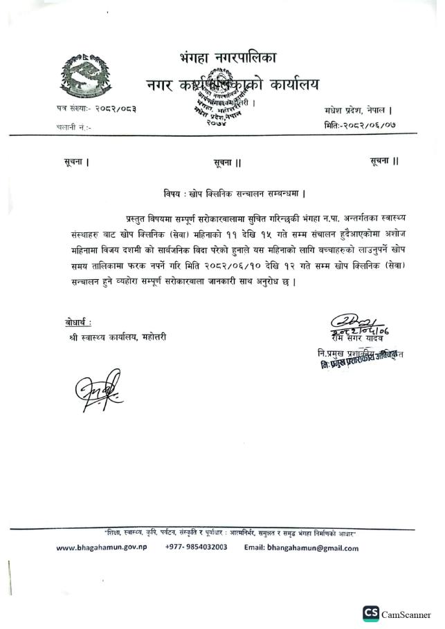 खोप क्लिनिक सन्चालन सम्बन्धमा ।