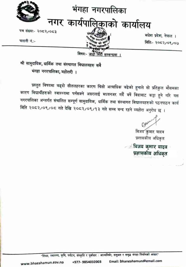 जाडो बिदा सम्बन्धमा ।