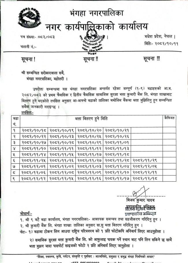 समाजिक सूरक्षा भत्ता वितरण सम्बन्धि सूचना ।