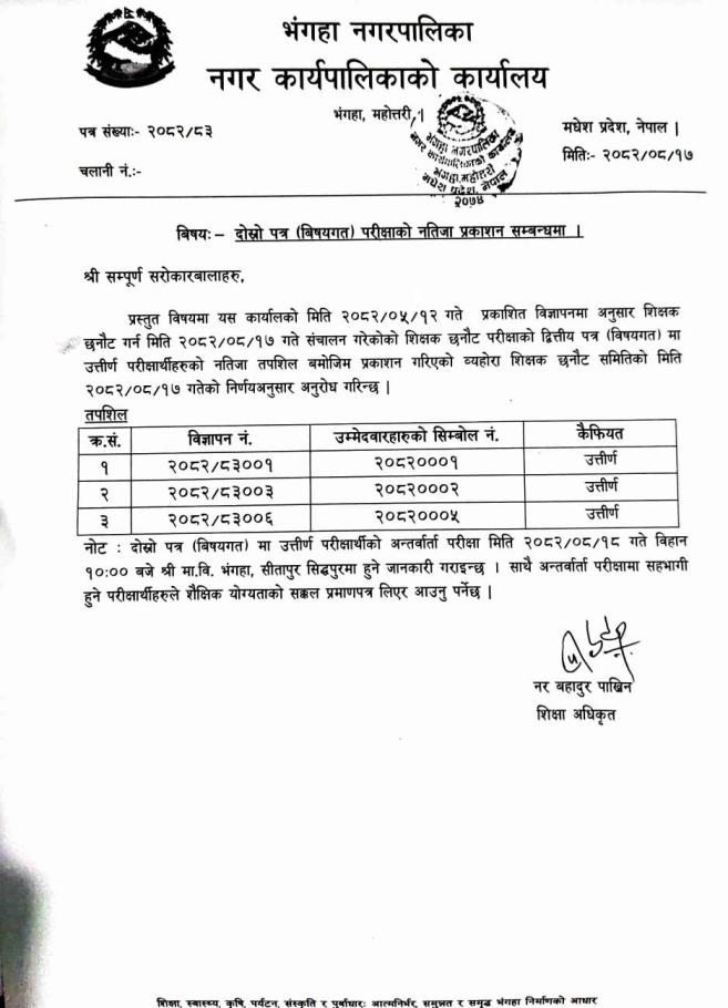 » दोस्रो पत्र (बिषयगत) परिक्षाको नतिजा प्रकाशन सम्बन्धमा ।