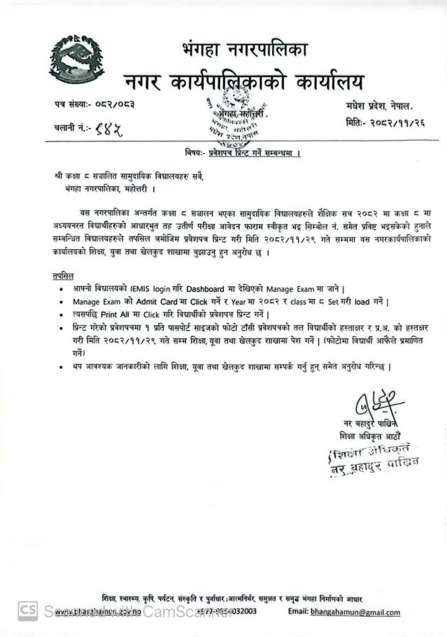 » प्रवेश पत्र प्रिन्ट गर्ने सम्बन्धमा ।