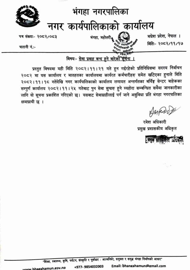 सेवा प्रवाह बन्द हुने बारेको सूचना ।